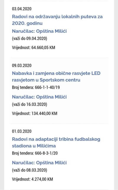 Održavanje lokalnih puteva u Milićima, takođe, pripada firmi “Gramel”, koja za ovaj posao dobija gotovo 65.000 KM.