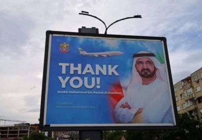 Ujedinjeni Arapski Emirati, prije 20-ak dana avionom Boing 747-400 u Sarajevo su poslali vrijednu pomoć. Najavljeno je da će biti dostavljeno 100.000 testova, 25.000 odjevnih kompleta za zaštitu, 150.000 pari rukavica, 150.000 maski N95 150.000 jednokratnih hirurških maski, 150.000 jednokratnih zaštitnih maski, 50.000 vizira i 20.000 zaštitnih naočara.
