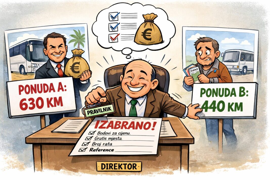 Ovaj primjer još jednom pokazuje da je postojeći pravilnik loše postavljen i da u praksi može omogućiti monopol pojedinim turističkim agencijama. Sistem bodovanja daje prednost onima koji već imaju veliki broj realizovanih ekskurzija, čime se njihov položaj dodatno učvršćuje, dok se druge agencije praktično obeshrabruju da uopšte učestvuju na javnim pozivima.