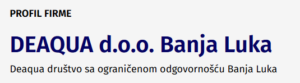 • DEAQUA d.o.o. – firma sa višegodišnjim kontinuitetom poslovanja, milionskim godišnjim prihodima i stabilnom dobiti.