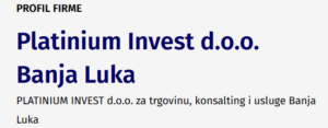• PLATINIUM INVEST d.o.o. – firma povezana sa ranijim stambenim projektima u Banjoj Luci, koja prema finansijskim izvještajima prestaje sa značajnijim poslovanjem nakon 2015. godine. Nakon tog perioda, kao investitorski subjekt u Banjoj Luci pojavljuje se OMC d.o.o.