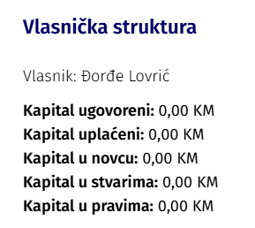 U isto vrijeme, kroz različite uloge u više firmi (vlasnik, osnivač, direktor, odgovorno ili povezano lice) pojavljuju se ista imena, prije svega Goran Đukić i Đorđe Lovrić. Upravo ta mreža firmi postaje ključna za razumijevanje finansijske konstrukcije projekta i raspodjele rizika.