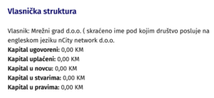 U istoj strukturi pojavljuje se i nCity Network d.o.o., kao dodatna poslovna karika koja ukazuje na širinu i razgranatost mreže povezanih firmi.