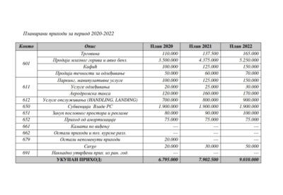 Za 2020. godinu je planirano da ukupni prihodi iznose 6.785.000 KM, od čega će samo od Vlade RS da dobiju 1.900.000 KM. Jedini veći planirani prihod od ove subvencije vlade jeste prodaja mlaznog goriva i avio benzina.