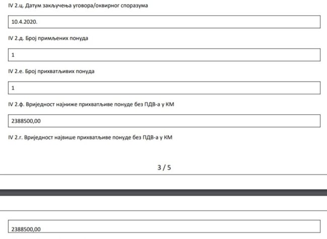 Da ni suma novca od 1.880.500 KM koju su naveli ne odgovara sumi novca od 2.388.500 KM bez PDV-a koja je zagarantovana ugovorom, svjedoče dokumenti u nastavku.