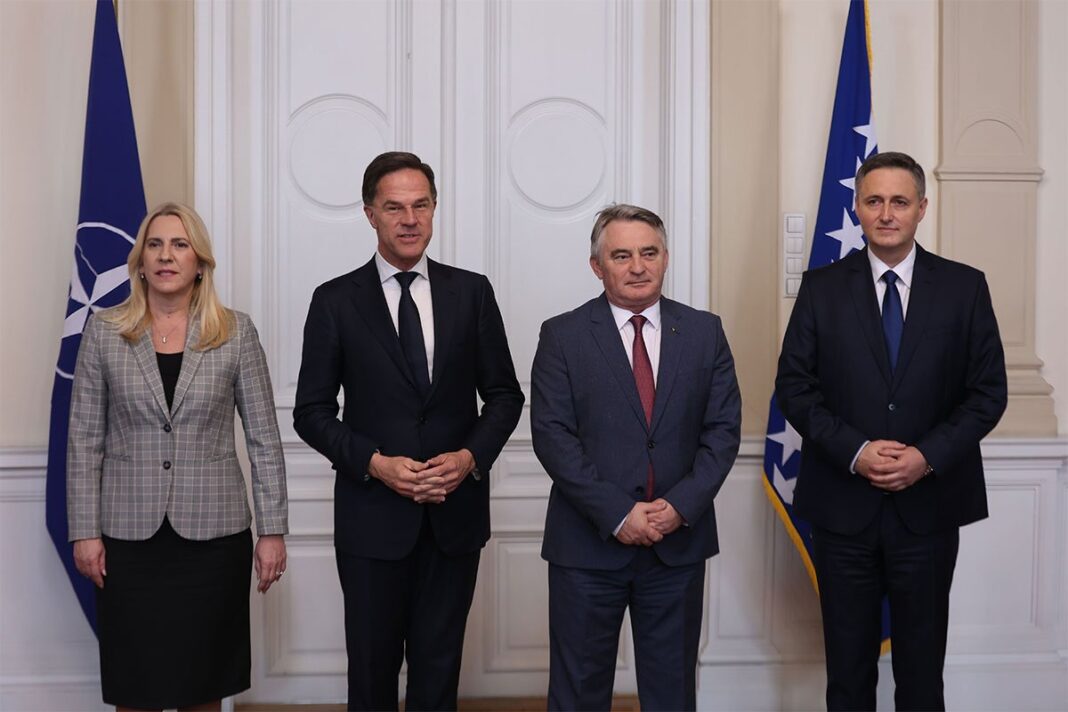 U Sarajevu je počeo sastanak članova Predsjedništva BiH sa generalnim sekretarom NATO-a Markom Ruteom koji je doputovao u radnu posjetu BiH.