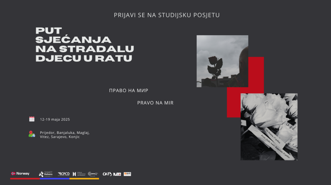 Omladinski centar CK13, Inicijativa mladih za ljudska prava – Crna Gora i Centar za mlade „KVART“ Prijedor organizuju studijsku posjetu „Put sjećanja na djecu stradalu u ratu“, s ciljem memorijalizacije stradanja djece u ratu u Bosni i Hercegovini od 1992. do 1995. godine.