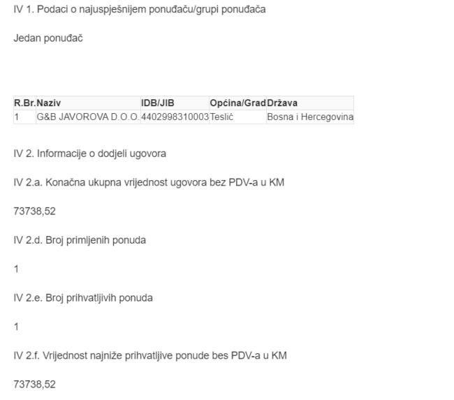 Jedan od skorijih primjera jeste ugovor vrijedan 73.738,52 KM bez PDV-a između firme G&B Javorovo i Šuma Srpske na prostoru Šumskog gazdinstva “Borja” za usluge sječe i izrade šds-a, te usluga izgradnje novih i popravke postojećih traktorskih vlaka na prostoru Krivaje i Gornje Velike Usore.