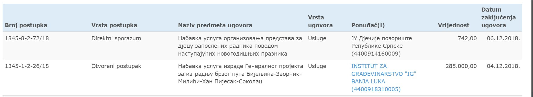 Podnosioci prijave su naveli da su zbog neizvršavanja obaveza kompanije Institut za građevinarstvo IG Banja Luka raskinuti ugovori vezani za HE „Una“ iz jula 2018. i za TE „Kakanj“ iz marta 2020, čime je nanesena direktna šteta za EP BiH. No, uprkos ne tako sjajnoj listi referenci IG Banja Luka usoješno je završila projektnu dokumentaciju za izgradnju brze ceste Bijeljina-Sokolac.